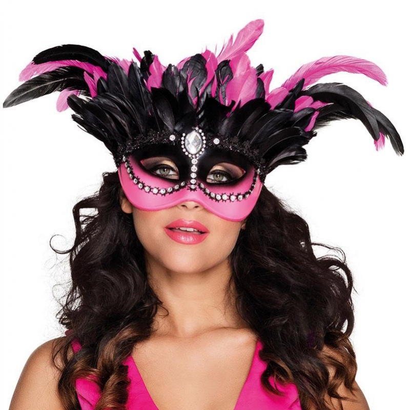 Ornée de plumes noires et rose, ce masque vénitien au design original allie à la perfection l'élégance et la profondeur du noir avec la gaieté de la couleur rose pour un rendu festif et raffiné.