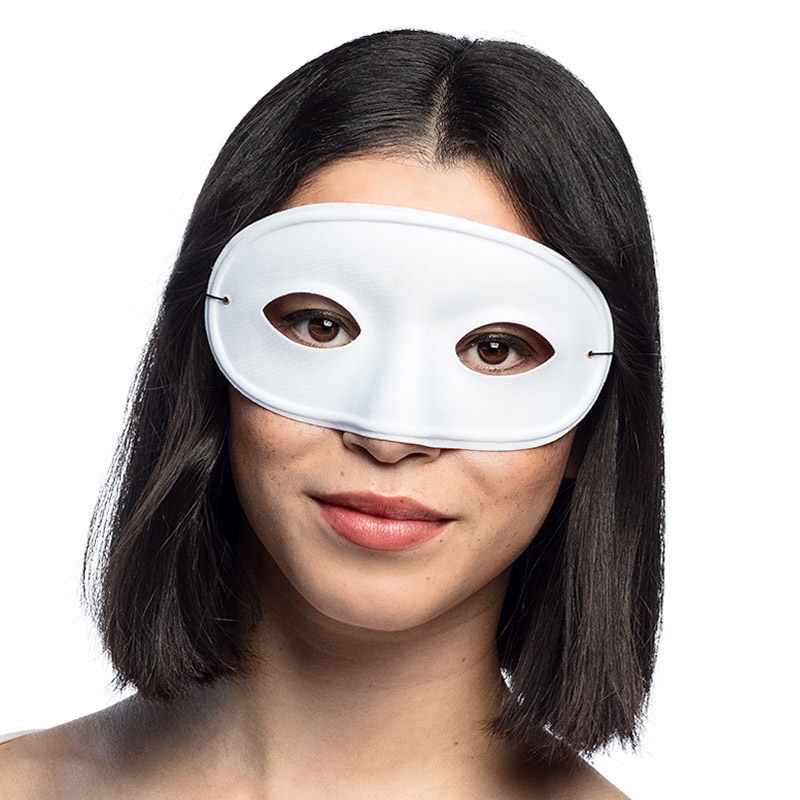 Maintenu en place à l'aide d'un élastique ce masque blanc fera également sensation lors d'un bal masqué ou à l'occasion d'une soirée vénitienne.