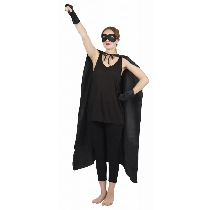 Ce kit de super héros pour adulte comprend un masque, une longue cape et une paire de manchettes pour vous transformer en un clin d’œil en un véritable justicier ou un super vilain lors d’une soirée déguisée à thème ou à l'occasion d'un carnaval.
